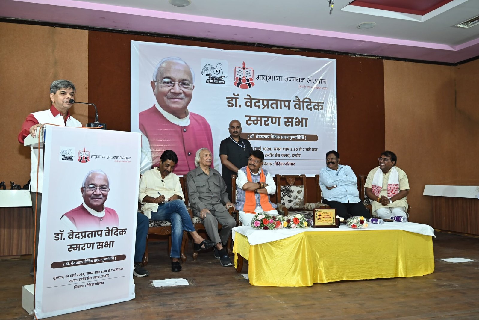डॉ. वेदप्रताप वैदिक जी के प्रथम पुण्यस्मरण पर इन्दौर प्रेस क्लब, मातृभाषा उन्नयन संस्थान और वैदिक परिवार द्वारा गुरुवार को शाम इन्दौर प्रेस क्लब में डॉ. वैदिक स्मरण समारोह आयोजित किया गया।